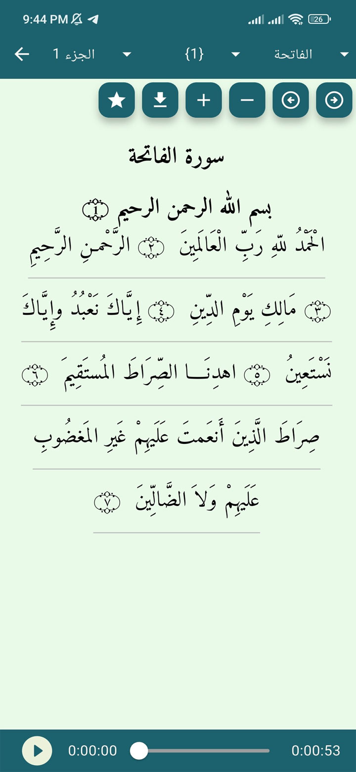 توفير النص الكامل للقرآن الكريم مع التلاوة الصوتية، بالإضافة إلى فهرسة السور، الأجزاء، والصفحات.